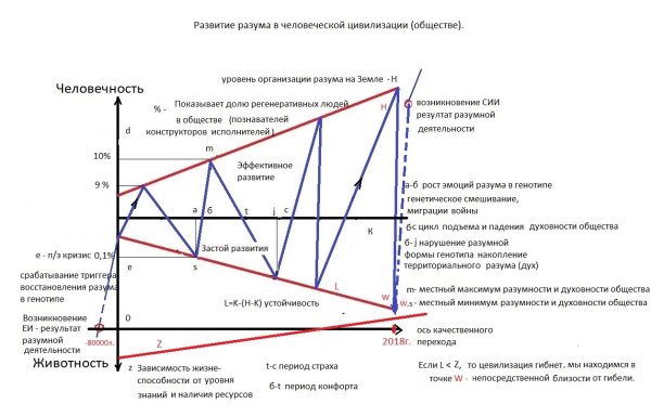 Вот отчего развитие человечества в исторической динамике пока идет по "животной" линии развития. То есть, достигнув определенной жизнеустойчивости, оно начинает усиленно расти количественно, как и любая бионеразумная популяция.