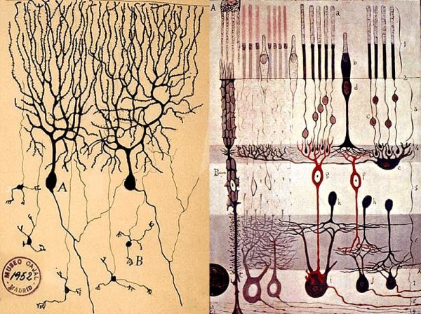 Кохаль завещал нам, что сигнал по нейрону должен распространяться В ОДНОМ НАПРАВЛЕНИИ (и дал нам представление о классической форме нейрона: дендрит, тело, аксон). Но он же при этом зарисовал довольно много нейронов и других форм, в частности, звездчатых (они же - мультиполярные), и, как пример, горизонтальные и амакриновые клетки в сетчатке глаза, которые, как я считаю, не вписываются в эту его основную концепцию.