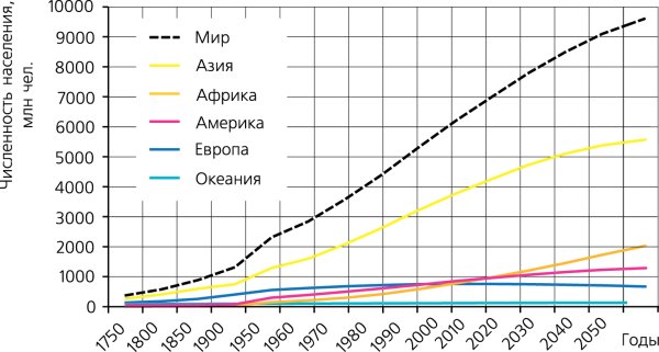 а вот Африка и Азия в этом слабы и график показывает нам эту слабину ростом населения.