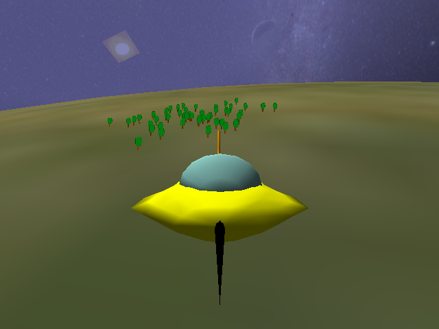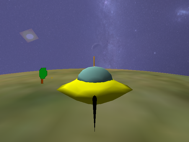реализована трёхмерная сцена с небосводом (skybox или textured sphere);